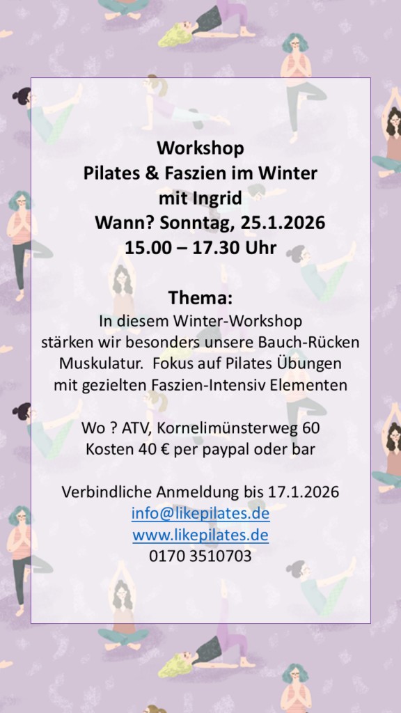 Der Faszien-Workshop findet am Sonntag, den 25. Januar 2026 statt! Ich freue mich schon sehr auf einen gemeinsamen Nachmittag voller Bewegung, Entspannung und neue Erkenntnisse über unsere Faszien.